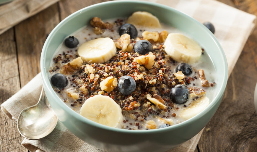 Овсянка с бананом, ягодами и орехами